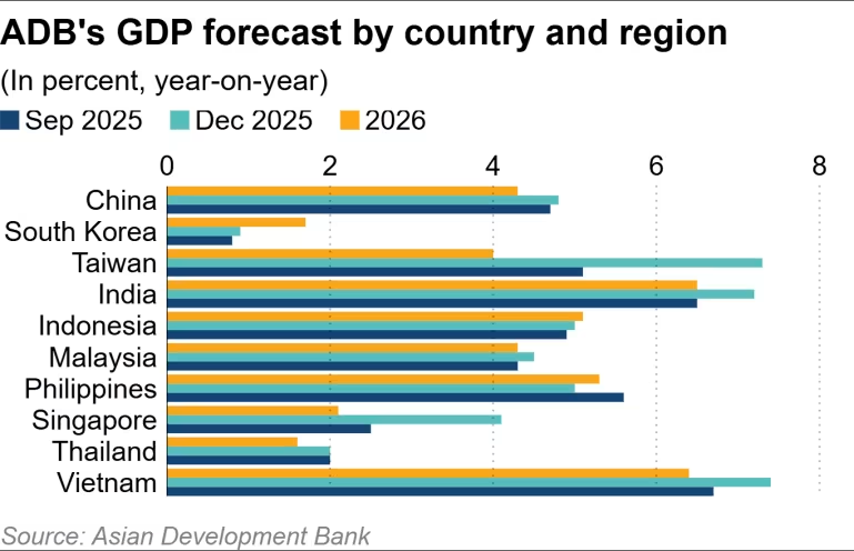 關鍵詞: 亞洲開發銀行 (ADB)、台灣 (7.3%)、越南 (7.4%)、AI 需求、川普關稅、中國房地產