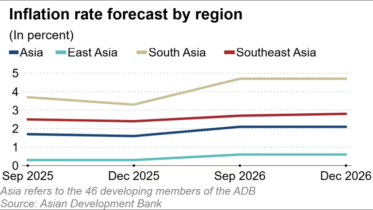 雖然數據亮眼,ADB 仍警告「貿易政策不確定性」是最大隱憂。川普針對特定行業(藥品、半導體)的關稅尚未完全落地,且資產價格波動可能引發債務危機與資本外流。通膨方面,預計今年降至 1.6%,隨著美國降息,亞洲各國將擁有更多貨幣寬鬆的空間。